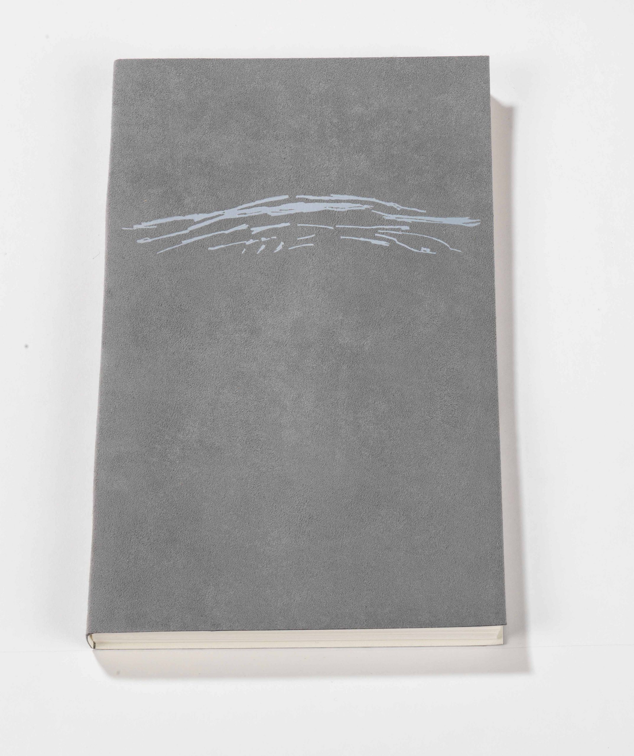 14 letterpress prints bound in a soft, embossed jacket. Printed in slate grey on 68 g/sqm Whatman paper from 1957. Edition of 15, numbered in Arabic numerals and signed, 3 designated as e.a. and as h.c. All motifs are being published as individual prints in an edition of 12 copies apiece. The corresponding first 3 series of individual sheets enclosed in portfolios have been assigned to the 3 preferred editions of the book, which are numbered in Roman numerals and bound in leather. Printed by Till Verclas, processing by Buchbinderei Christian Zwang, bookbinder, both in Hamburg,
